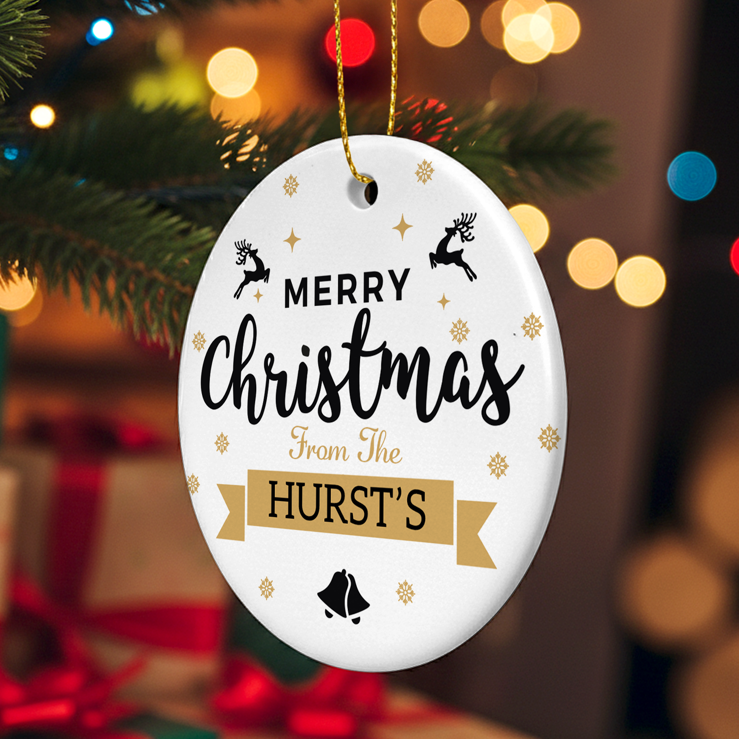Custom Ceramic Christmas Ornament – Family Name Decoration - Merry Christmas