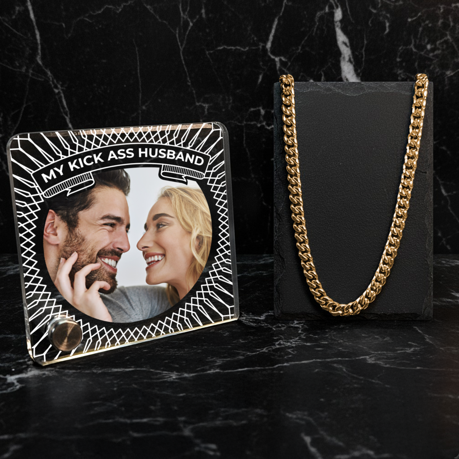 My Kick Ass Husband - Gold 14k Cuban Chain With Personalised Acrylic Plaque