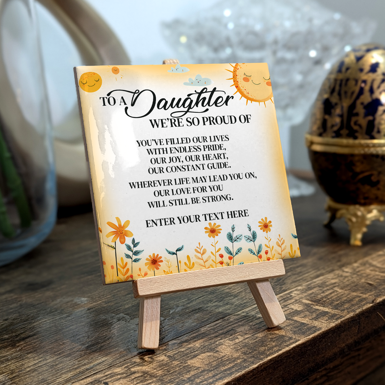 To A Daughter We're So Proud Of – Personalised Ceramic Tile with Easel