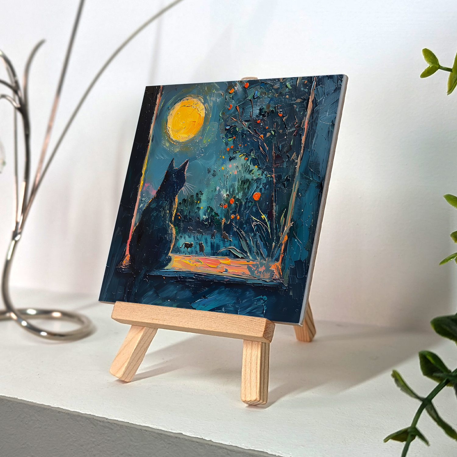 Presented on a natural wooden easel, this elegant 4.25" ceramic tile offers a compact and stylish display, perfect for desks, shelves, or mantelpieces. Its refined design adds character and creativity to your home decor, whether displayed individually or as part of a curated collection.